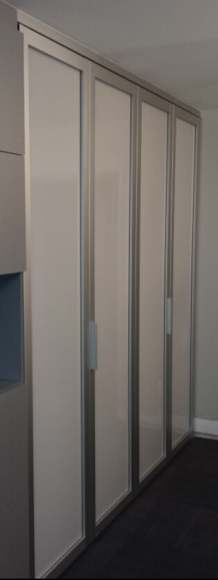 Les portes pliantes sont principalement utilisées pour le placard ou la penderie lorsque l’espace restreint ne permet par le débattement d’une porte battante ou l’utilisation de portes coulissantes.